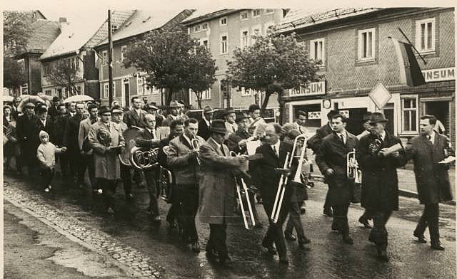 Der erste öffentliche Auftritt erfolgte am 1.Mai 1968 zur Kundgebung auf dem Marktplatz von Oberweißbach. Mit Stolz wurden die ersten Märsche und Polkas dem Publikum vorgetragen. Danach ging es stetig bergauf und es kamen immer mehr neue Titel hinzu.